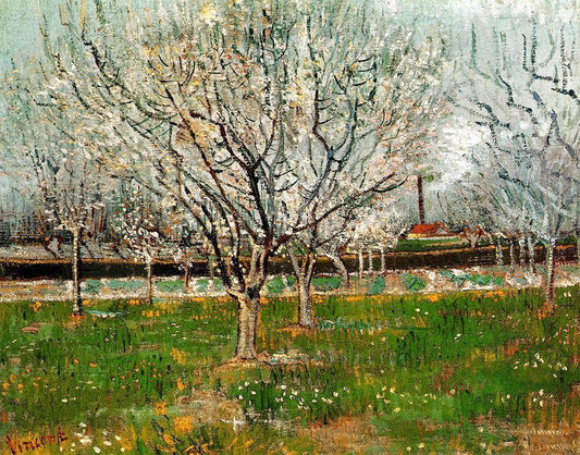 Plum Trees In Blossom White Modern Wood Framed Art Print with Double Matting by Van Gogh, Vincent