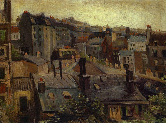 Roofs In Paris White Modern Wood Framed Art Print with Double Matting by Van Gogh, Vincent