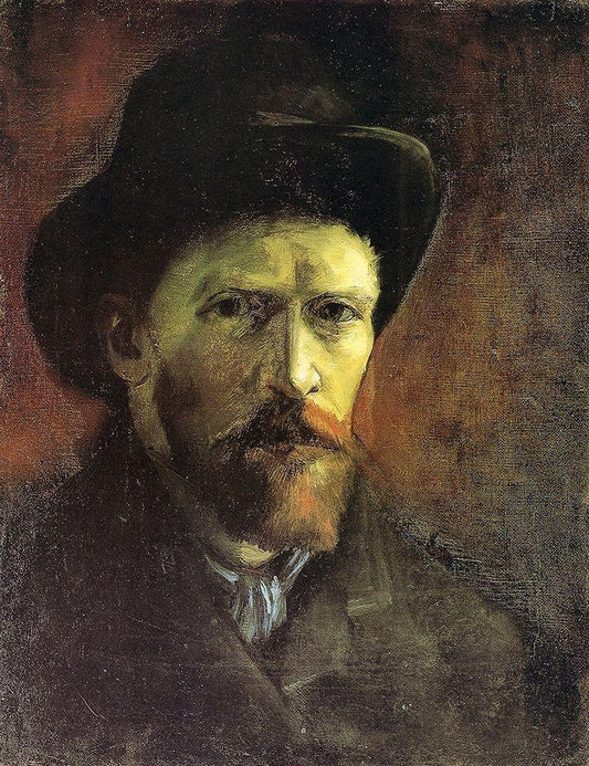 Self Portrait Dark Felt Hat White Modern Wood Framed Art Print with Double Matting by Van Gogh, Vincent
