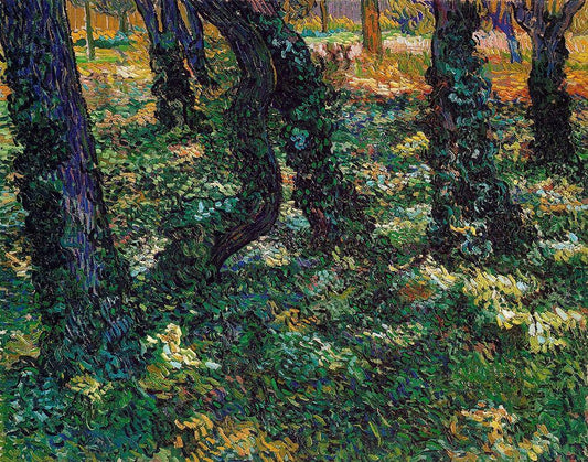Undergrowth White Modern Wood Framed Art Print with Double Matting by Van Gogh, Vincent