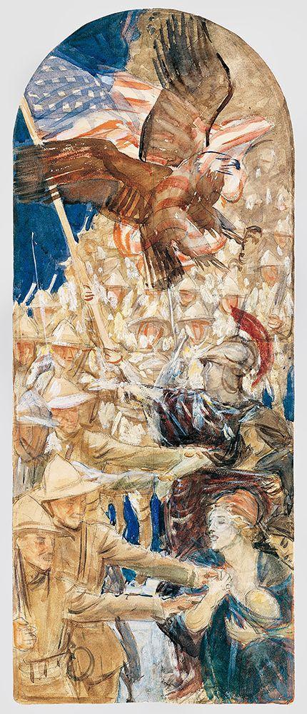 Study for The Coming of the Americans White Modern Wood Framed Art Print with Double Matting by Sargent, John Singer