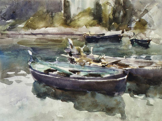 Small Boats White Modern Wood Framed Art Print with Double Matting by Sargent, John Singer