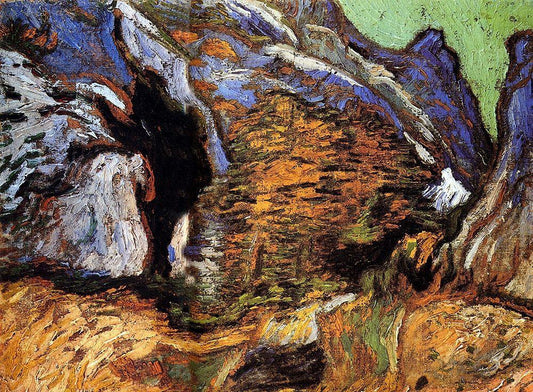 Les Peiroulets Ravine White Modern Wood Framed Art Print with Double Matting by Van Gogh, Vincent