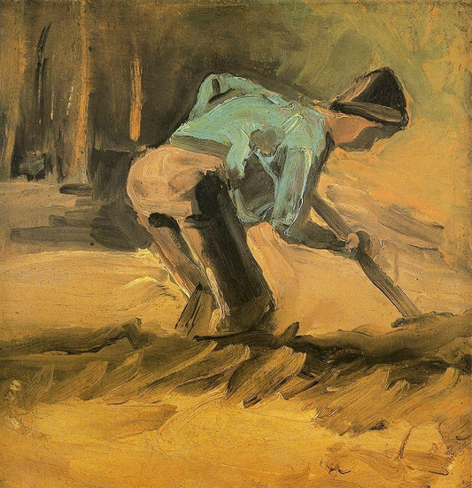 Man Digging White Modern Wood Framed Art Print with Double Matting by Van Gogh, Vincent