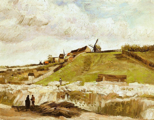 Montmartre Quarry Mills White Modern Wood Framed Art Print with Double Matting by Van Gogh, Vincent