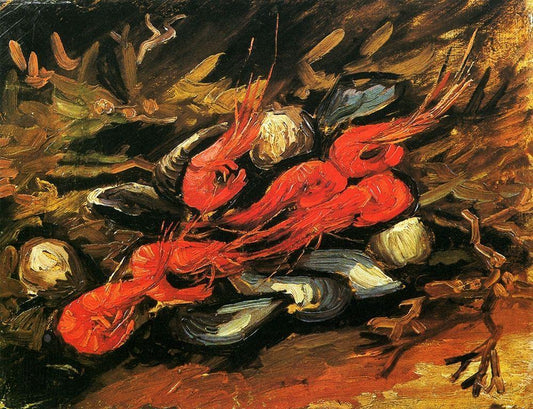 Mussels Shrimp White Modern Wood Framed Art Print with Double Matting by Van Gogh, Vincent