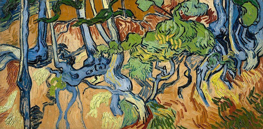 Tree Roots And Trunks, 1890 White Modern Wood Framed Art Print with Double Matting by Van Gogh, Vincent