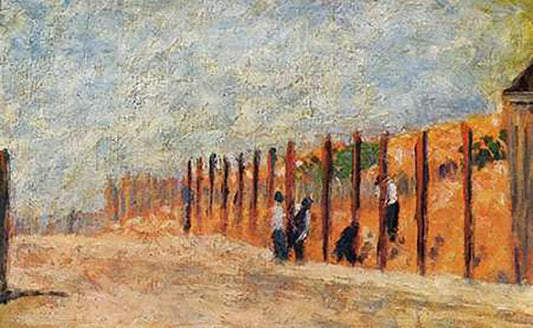 Peasants Driving Stakes White Modern Wood Framed Art Print with Double Matting by Seurat, Georges