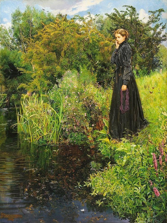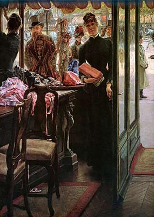 The Shop Girl White Modern Wood Framed Art Print with Double Matting by Tissot, James