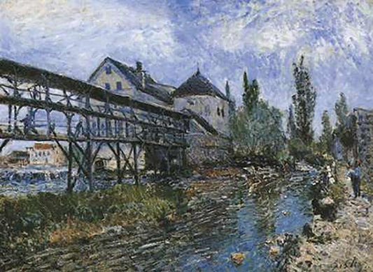 Provenchers Mill At Moret White Modern Wood Framed Art Print with Double Matting by Sisley, Alfred