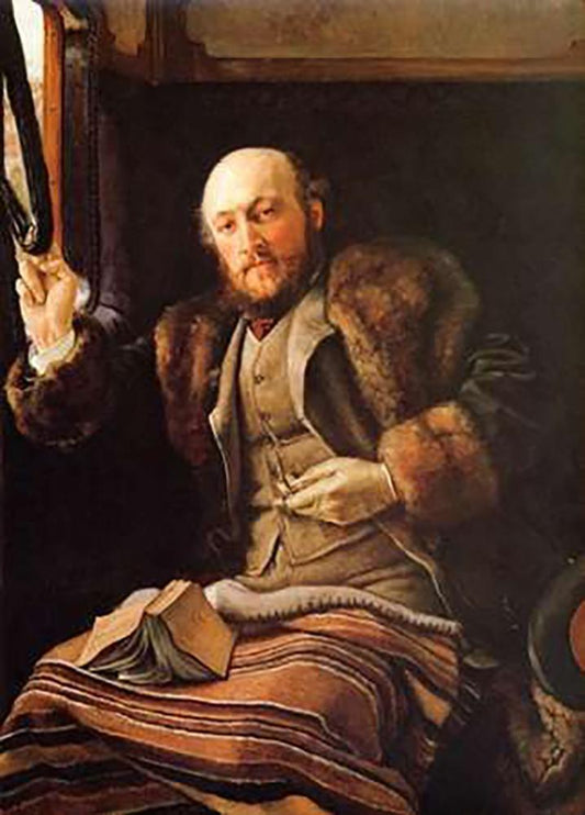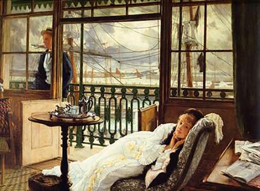 Capitaine In Railway Carriage White Modern Wood Framed Art Print with Double Matting by Tissot, James