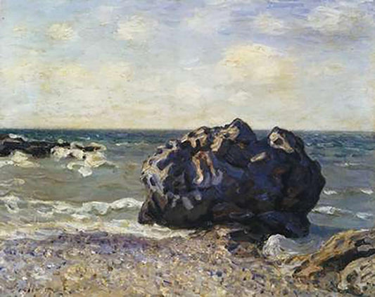 Langland Bay Storrs Rock Morning White Modern Wood Framed Art Print with Double Matting by Sisley, Alfred