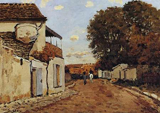 Street In Louveciennes White Modern Wood Framed Art Print with Double Matting by Sisley, Alfred