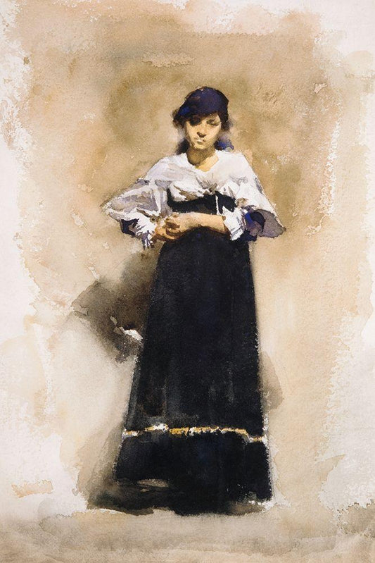 Young Woman with a Black Skirt White Modern Wood Framed Art Print with Double Matting by Sargent, John Singer