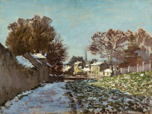 Snow Effect at Argenteuil 1875 White Modern Wood Framed Art Print with Double Matting by Monet, Claude