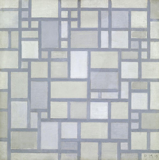 Composition in bright colors with gray lines White Modern Wood Framed Art Print with Double Matting by Mondrian, Piet