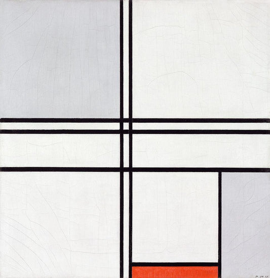 Composition No. 1 Gray-Red White Modern Wood Framed Art Print with Double Matting by Mondrian, Piet