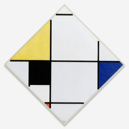 Lozenge Composition with Yellow-Black-Blue-Red-and Gray White Modern Wood Framed Art Print with Double Matting by Mondrian, Piet