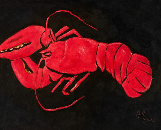 Lobster on Black Background White Modern Wood Framed Art Print with Double Matting by Hartley, Marsden