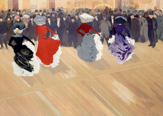 The quadrille at the Moulin-Rouge White Modern Wood Framed Art Print with Double Matting by Abel-Truchet, Louis