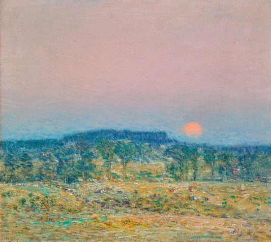 September Moonrise White Modern Wood Framed Art Print with Double Matting by Hassam, Childe