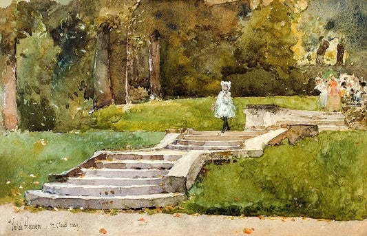 Saint-Cloud White Modern Wood Framed Art Print with Double Matting by Hassam, Childe