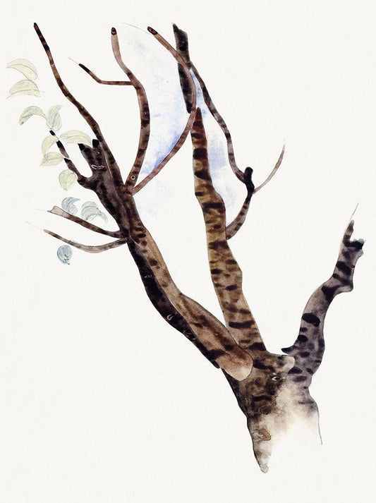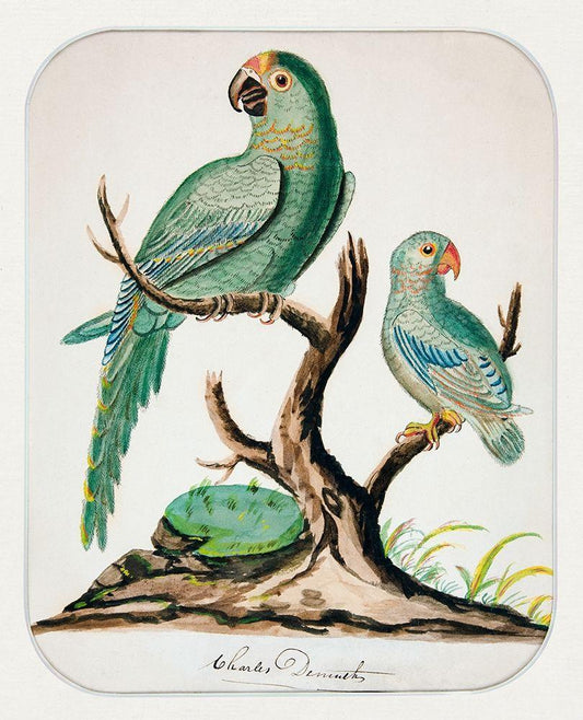 Two Parrots on a Barren Tree White Modern Wood Framed Art Print with Double Matting by Demuth, Charles