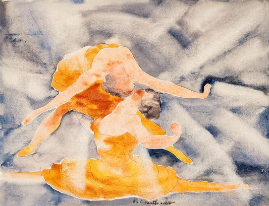 Two Women Acrobats White Modern Wood Framed Art Print with Double Matting by Demuth, Charles