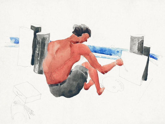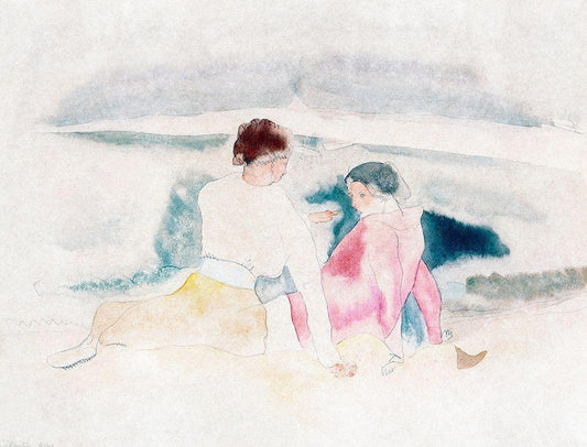The Artist on the Beach Sketching White Modern Wood Framed Art Print with Double Matting by Demuth, Charles