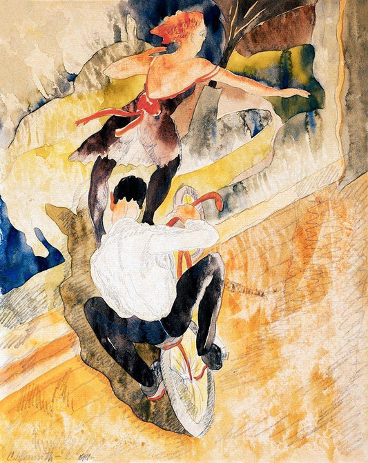 Bicycle Acrobats White Modern Wood Framed Art Print with Double Matting by Demuth, Charles