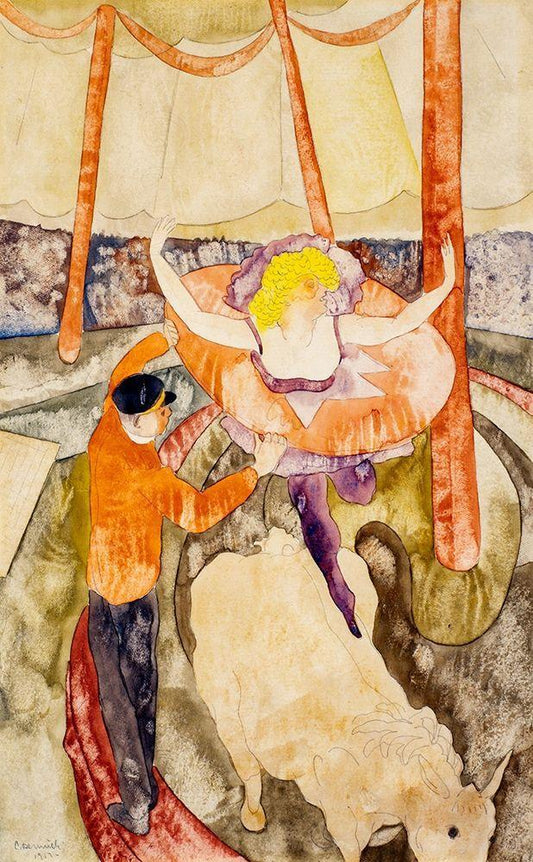 Equestrienne and Assistant White Modern Wood Framed Art Print with Double Matting by Demuth, Charles