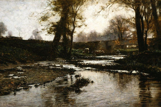 Pleasant Run White Modern Wood Framed Art Print with Double Matting by Steele, Theodore Clement