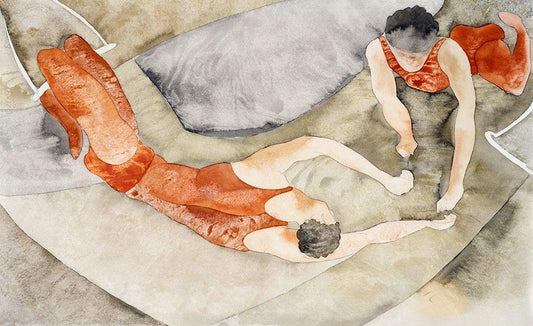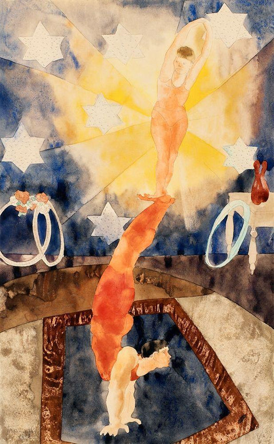 Two Trapeze Performers in Red White Modern Wood Framed Art Print with Double Matting by Demuth, Charles