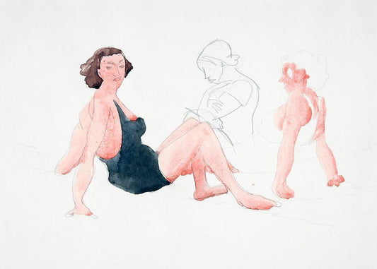 Three Women On the Beach-Provincetown White Modern Wood Framed Art Print with Double Matting by Demuth, Charles