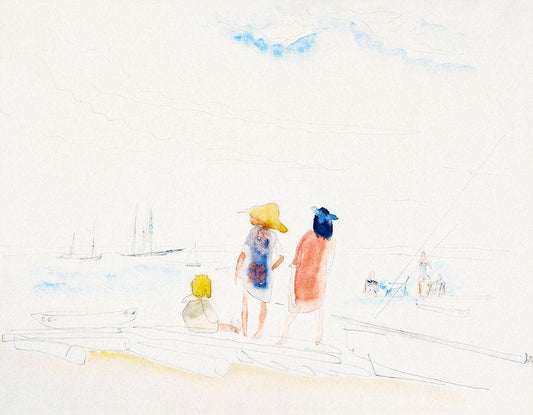 Two Women and Child on Beach White Modern Wood Framed Art Print with Double Matting by Demuth, Charles
