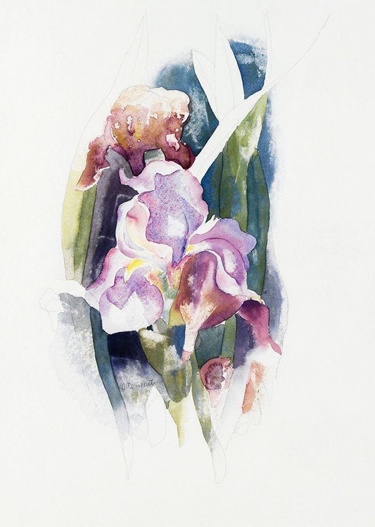 Purple Iris White Modern Wood Framed Art Print with Double Matting by Demuth, Charles