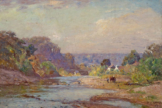 Brookville Landscape White Modern Wood Framed Art Print with Double Matting by Steele, Theodore Clement