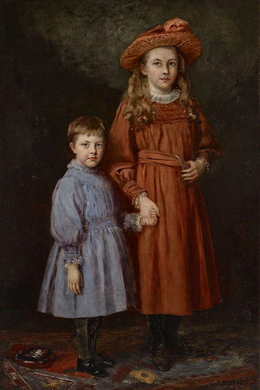 The Pierce Children White Modern Wood Framed Art Print with Double Matting by Steele, Theodore Clement