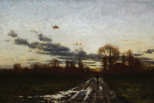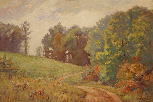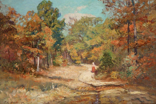 On the Road to Belmont White Modern Wood Framed Art Print with Double Matting by Steele, Theodore Clement