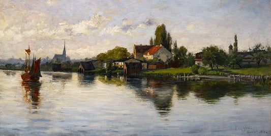Village of Schliersee-Highlands White Modern Wood Framed Art Print with Double Matting by Steele, Theodore Clement