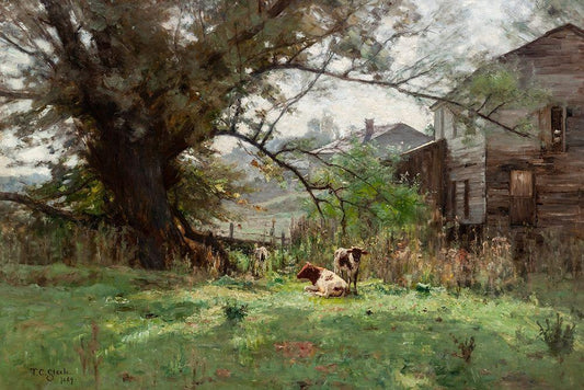 A June Idyl White Modern Wood Framed Art Print with Double Matting by Steele, Theodore Clement