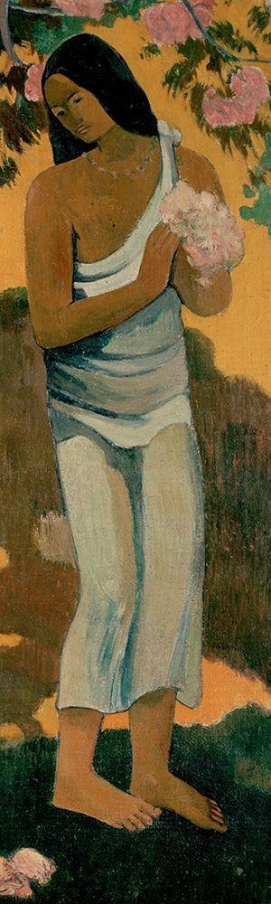 Tahitian Woman With Blossom White Modern Wood Framed Art Print with Double Matting by Gauguin, Paul