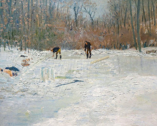 The Ice Cutters White Modern Wood Framed Art Print with Double Matting by Weir, J Alden