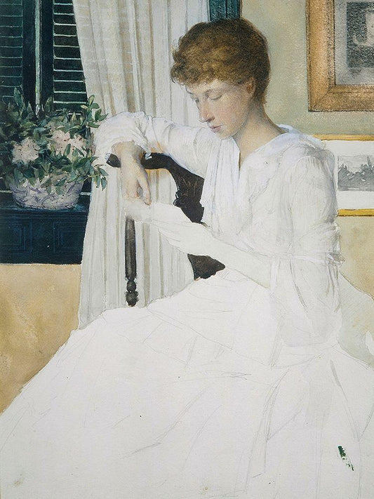 Anna Dwight Weir Reading a Letter White Modern Wood Framed Art Print with Double Matting by Weir, J Alden