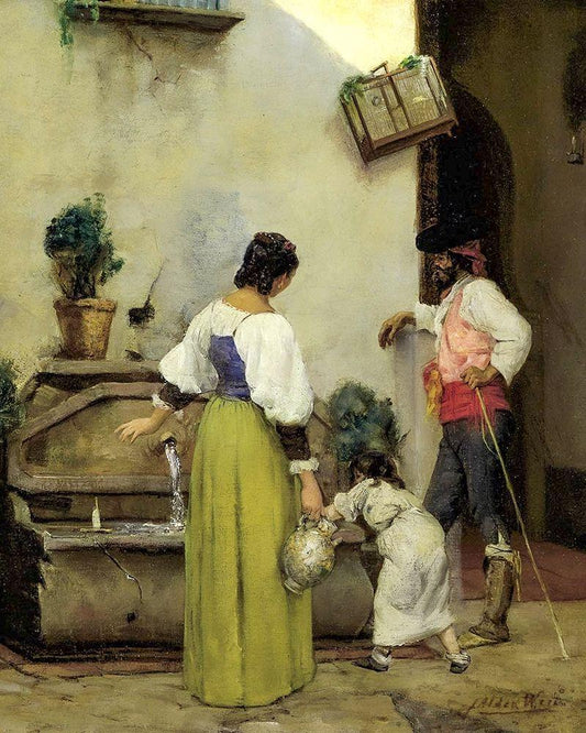 At the Water Trough White Modern Wood Framed Art Print with Double Matting by Weir, J Alden