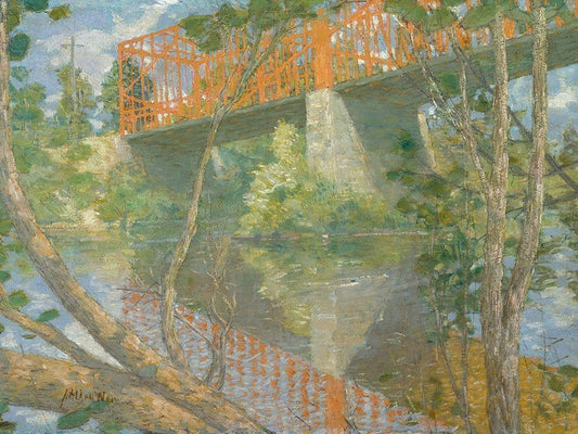 The Red Bridge White Modern Wood Framed Art Print with Double Matting by Weir, J Alden