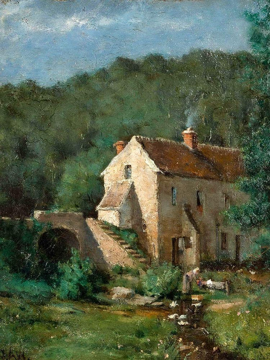 The Old Mill White Modern Wood Framed Art Print with Double Matting by Weir, J Alden