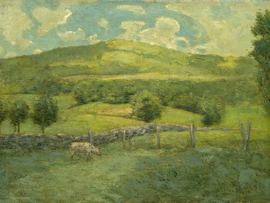 Summer in Connecticut. The Old Barn at Branchville White Modern Wood Framed Art Print with Double Matting by Weir, J Alden