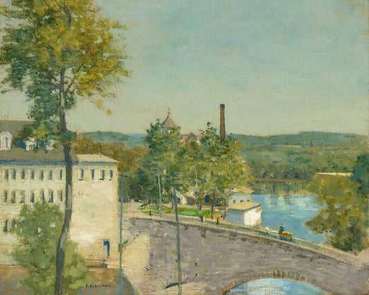 View on the cotton mill of Oiseel near Rouen White Modern Wood Framed Art Print with Double Matting by Pissarro, Camille