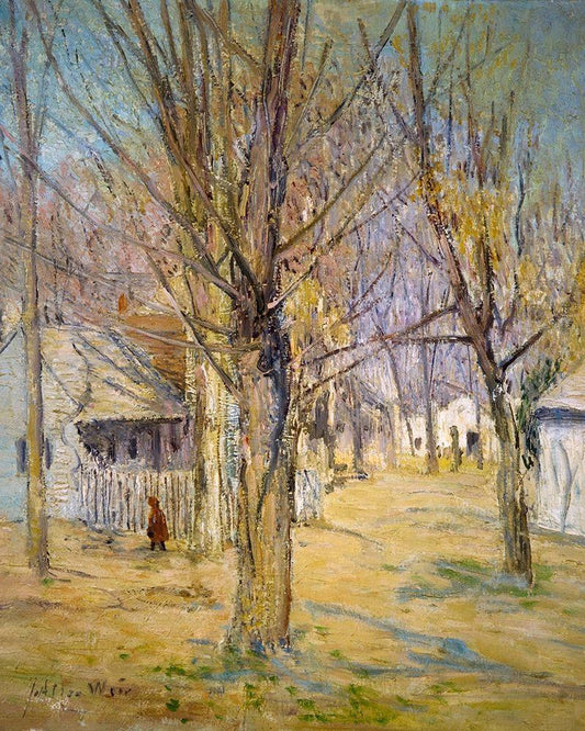 Connecticut Village-Going to School White Modern Wood Framed Art Print with Double Matting by Weir, J Alden